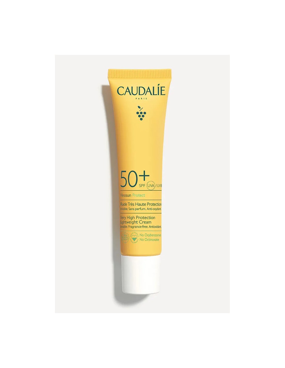 Caudalíe Fluido de Muy Alta Protección SPF50+ Vinosun Protect protege eficazmente el rostro y el cuello de los rayos UVA/UVB al tiempo que ofrece una acción antioxidante para las pieles más sensibles. Gracias a su textura invisible, ultraligera y sin perfume, protegerá tu piel de manera "clean" e invisible todos los días.
