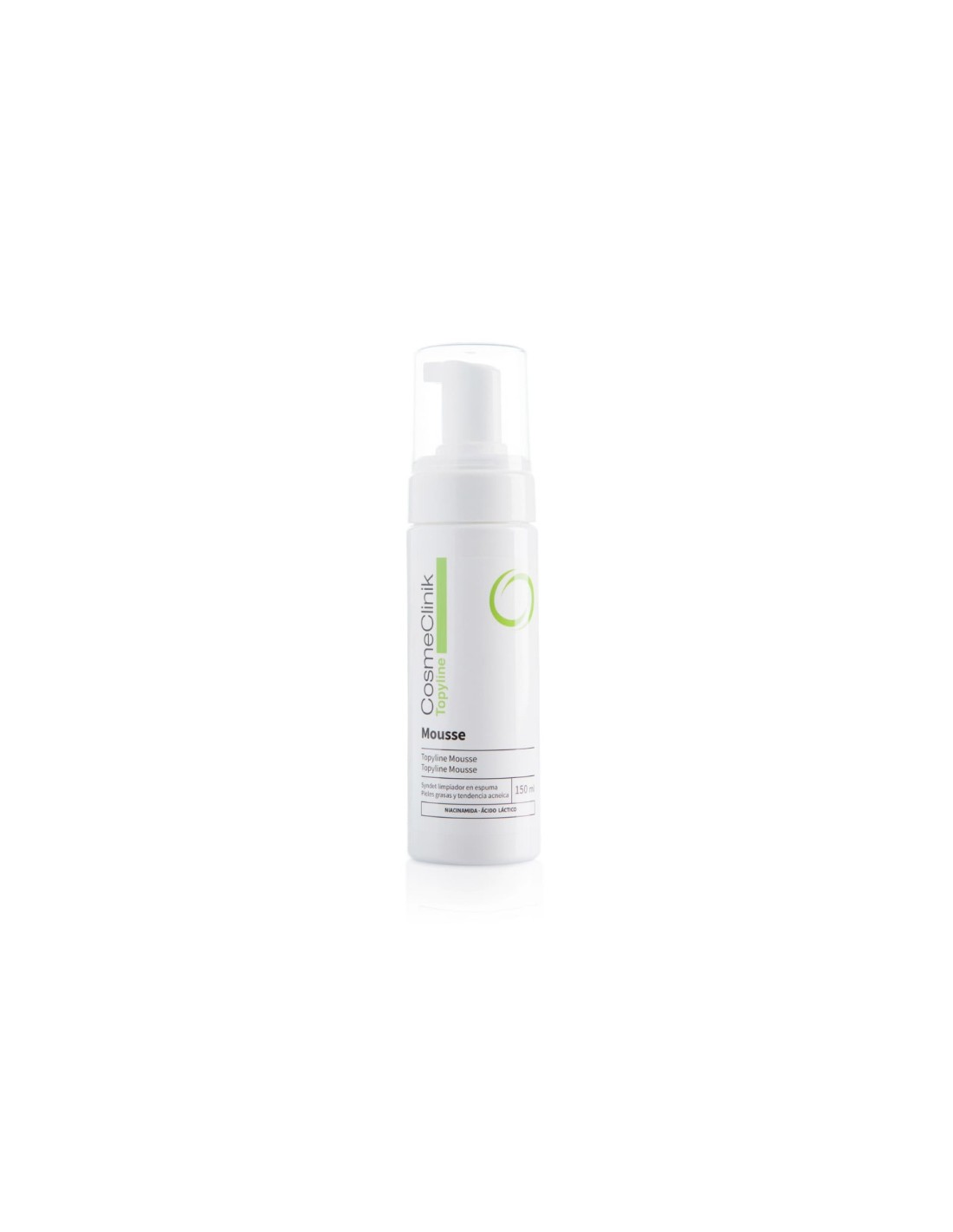 Topyline Mousse es un limpiador en espuma que exfolia suavemente la piel, regulando la secreción de exceso de sebo.