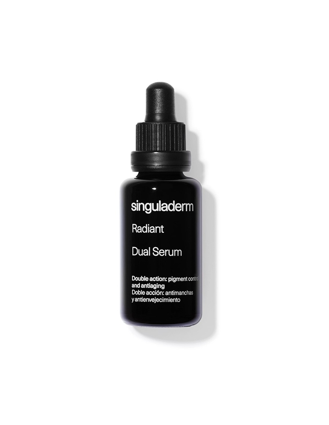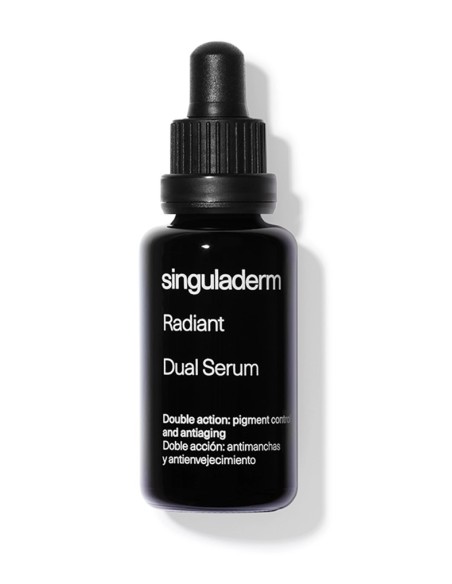 Radiant Dual Serum es un tratamiento intensivo de acción dual que ofrece una solución completa para combatir tanto las manchas como el envejecimiento de la piel. Formulado con una combinación potente de Stellight™, ácido tranexámico, niacinamida, azeoglicina y el complejo AntioxFerulic, este sérum trabaja en múltiples niveles para prevenir y reducir las manchas, unificar el tono de la piel, y proporcionar una potente acción antioxidante y antipolución.